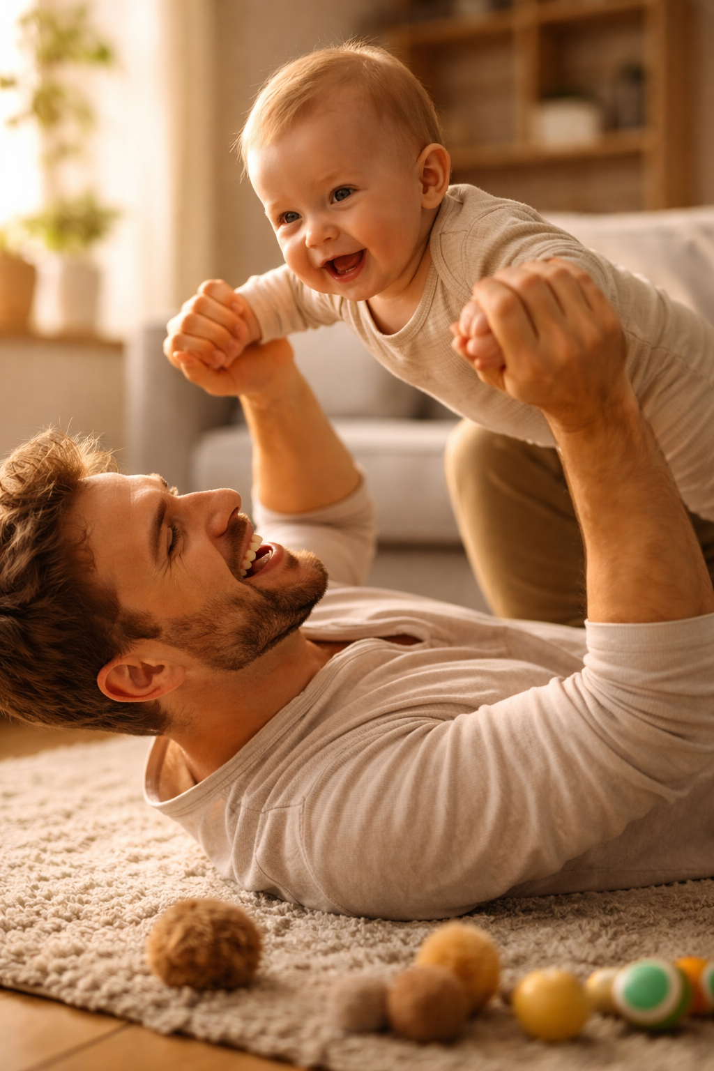Αυτό δεν σημαίνει ότι ο πατέρας δεν παρηγορεί ή η μητέρα δεν παίζει. Σημαίνει ότι υπάρχει μια τάση — στατιστική, όχι απόλυτη — ο πατέρας να λειτουργεί περισσότερο ως «γέφυρα προς τον κόσμο». Ενώ η μητέρα προσφέρει κυρίως ασφάλεια και ηρεμία, ο πατέρας προσφέρει κυρίως πρόσκληση και έκθεση. Ένα παράδειγμα: ο πατέρας που σηκώνει ψηλά το βρέφος, που παίζει πιο «άγρια», που αφήνει το παιδί να ξεπεράσει ένα μικρό εμπόδιο πριν επέμβει. Αυτές οι αλληλεπιδράσεις βοηθούν το παιδί να αναπτύξει ανοχή στην ένταση και αυτοπεποίθηση στη δική του ικανότητα.